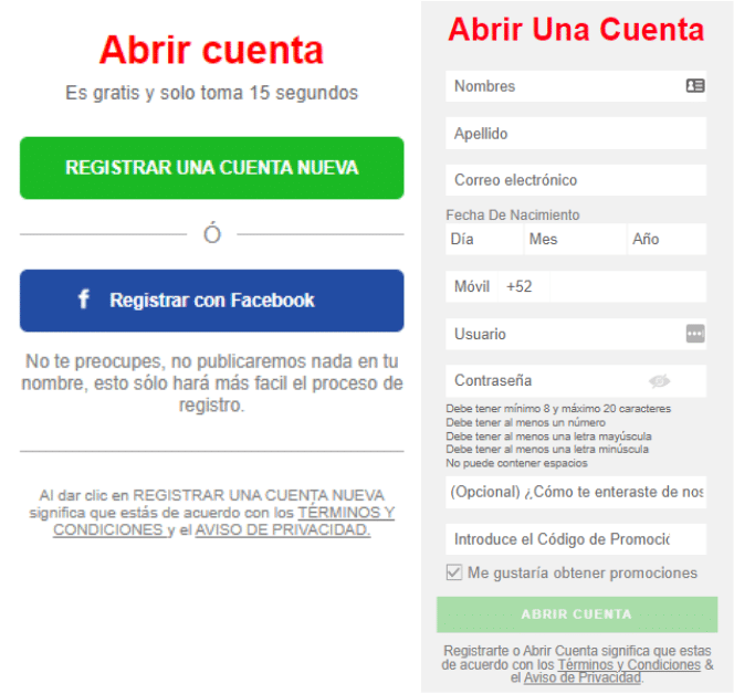 Registrarse en Caliente Mx con formulario