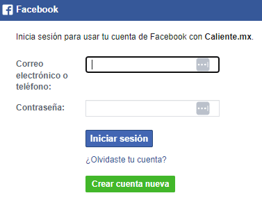 Registrarse en Caliente mediante Facebook