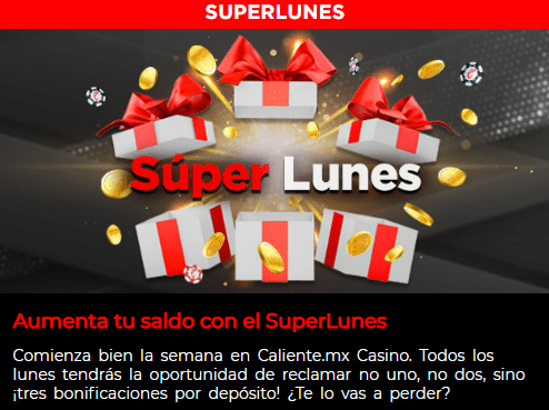 El primer día de la semana trae una promoción de bono en los tres primeros depósitos que se realicen cada lunes. La primera bonificación es del 10%, la segunda del 15% y la tercera del 20% con un valor máximo de bono de $2,000MXN. Para conseguir el bono hay que depositar un mínimo de $200MXN.