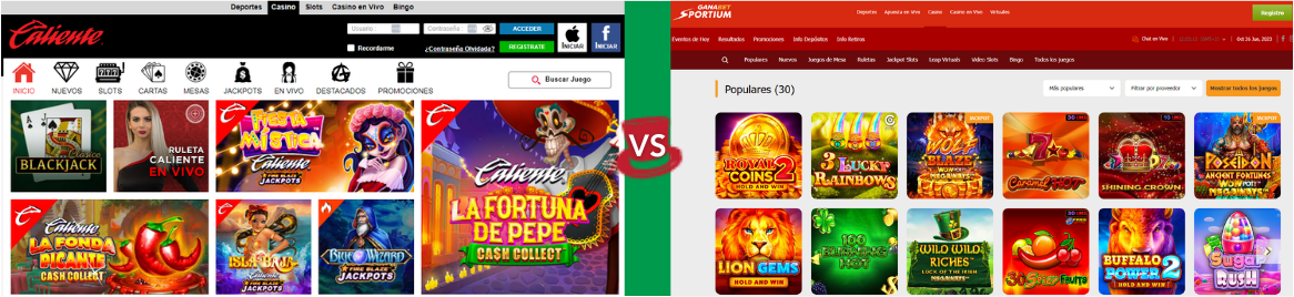En ambas se pueden encontrar juegos de casinos, como el blackjack, ruleta, mesas, jackpot y otros más. Es por eso que, en este apartado, decidir cuál es el mejor casino es algo complicado, pues los dos tienen variedad de opciones para ofrecer.